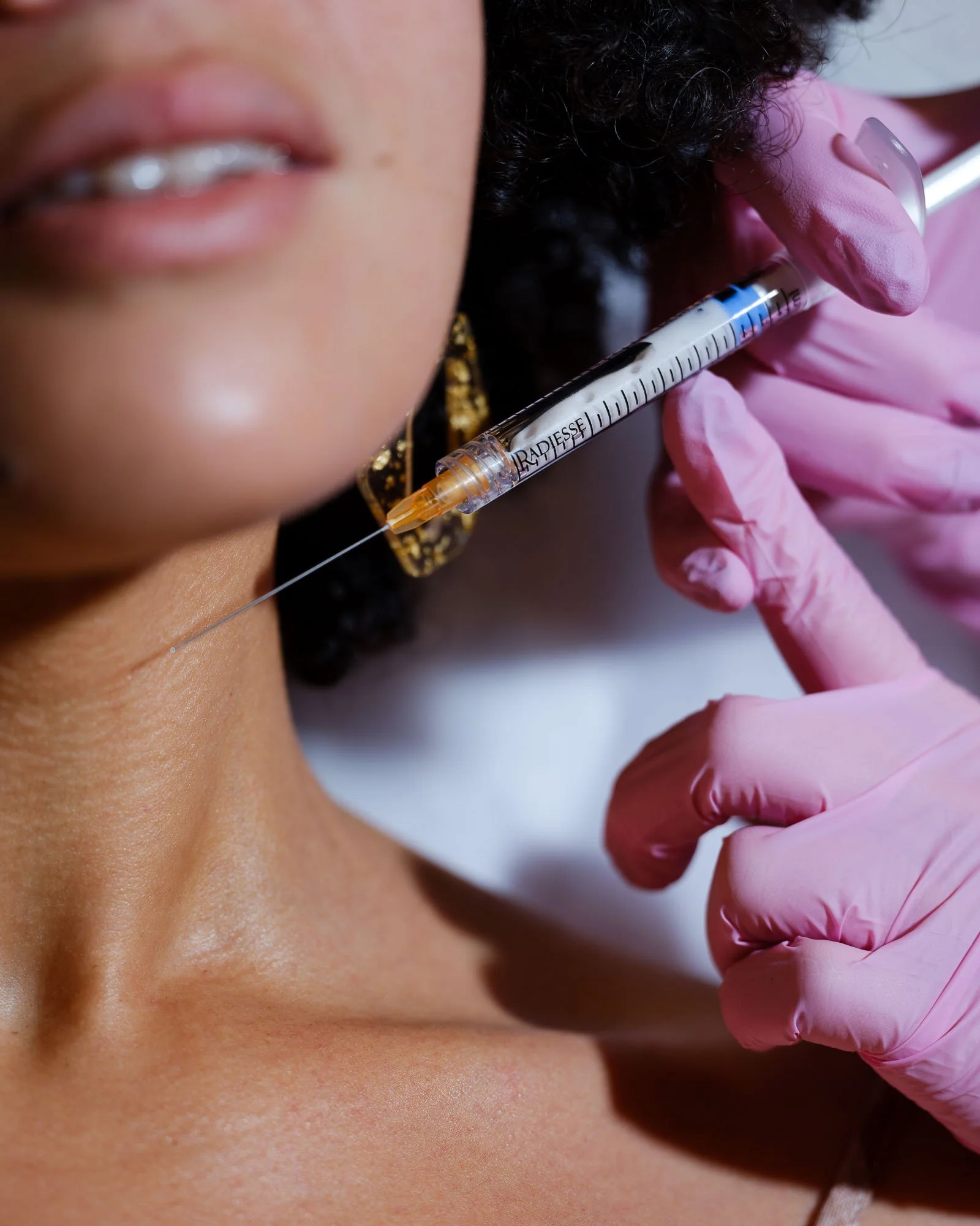 Radiesse® placed into the neck in dilute or hyper-dilute form. It works wonders against the most visible signs of aging in our necks. Over the course of this treatment, collagen and elastin production flourish and the skin on the neck becomes tighter, less crepey and less wrinkled. And because Radiesse® is long-lasting, the results on the neck are long-lasting, too.
