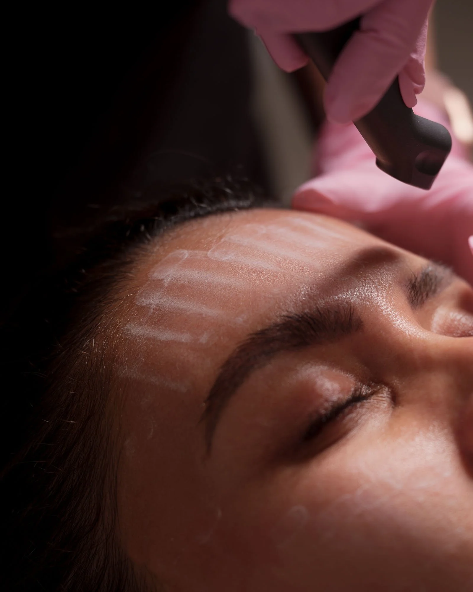 We begin with a gentle Sea Salt resurfacing, which feels slightly more intense than a dermaplane treatment but not painful in any way.