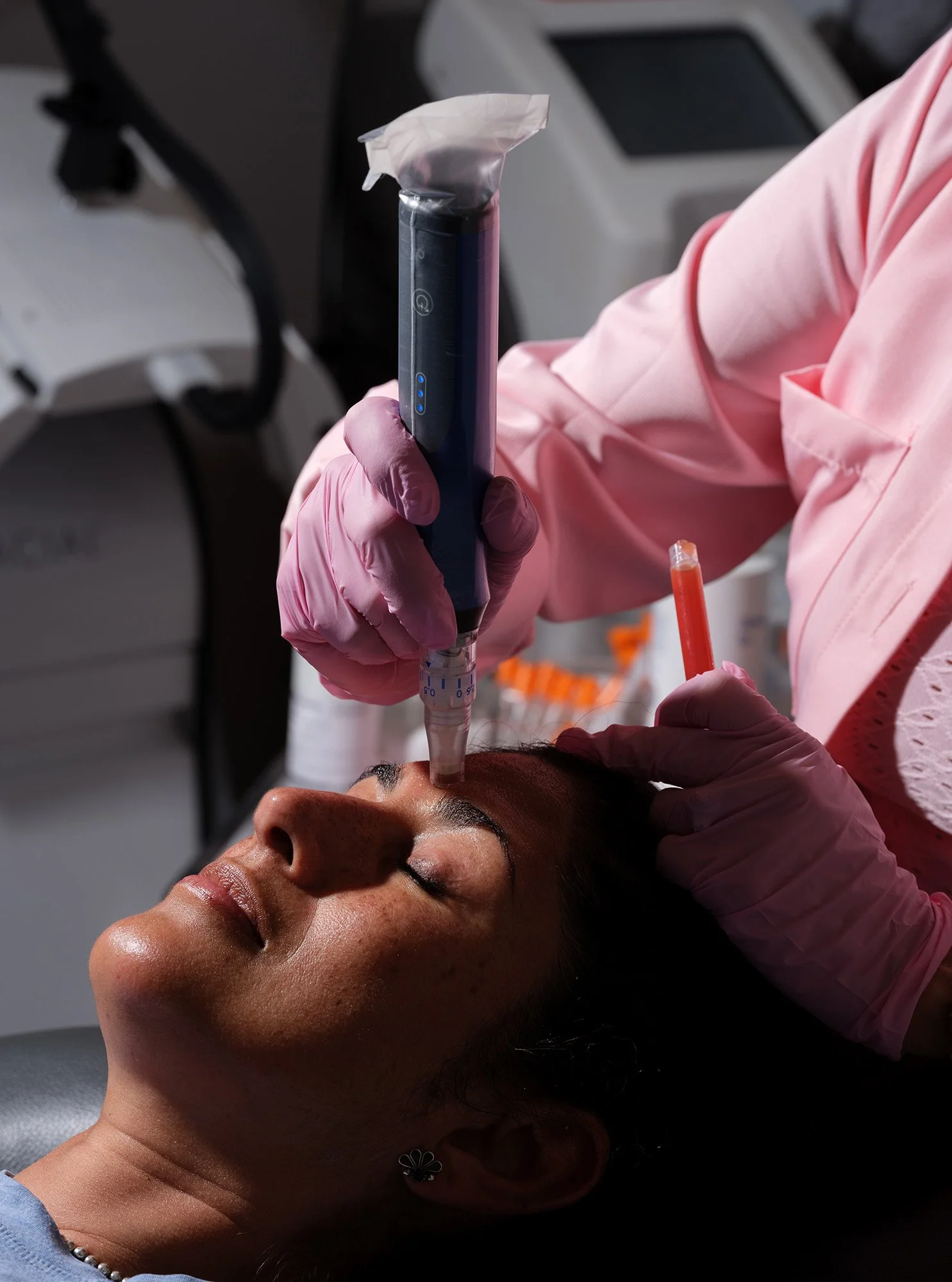 Depending on the desired result, PRF can be applied via microneedling, precision-injected to target specific concerns such as tired-looking under-eyes, or to fight hair loss.